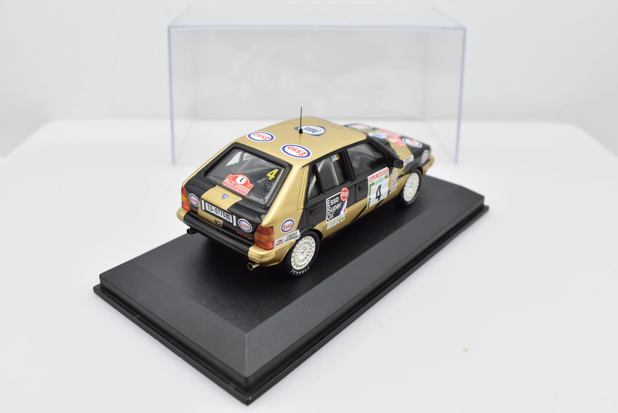 Modellino auto rally Lancia Delta HF 4WD Esso scala 1:43 diecast modellismo statico ixo