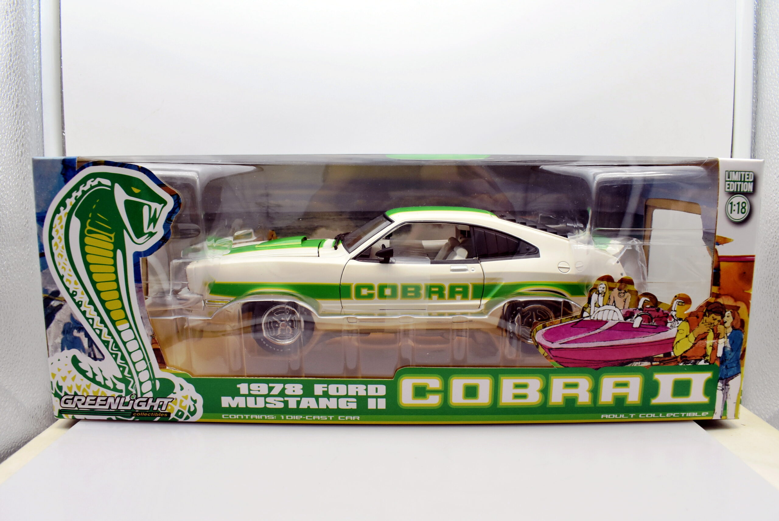 FORD MUSTANG II COBRA WHITE GREEN STRIPES 1976 GREENLIGHT 12895