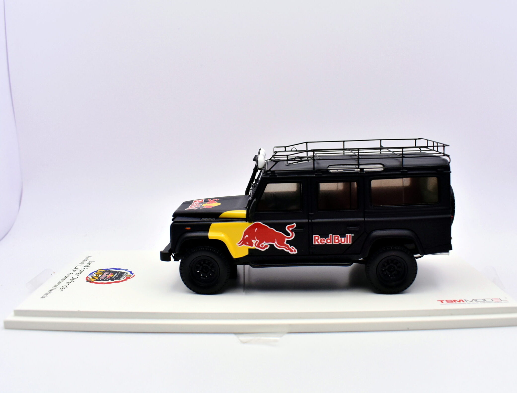 Modellino auto scala 1:43 land rover defender red bull TSM modellismo statico