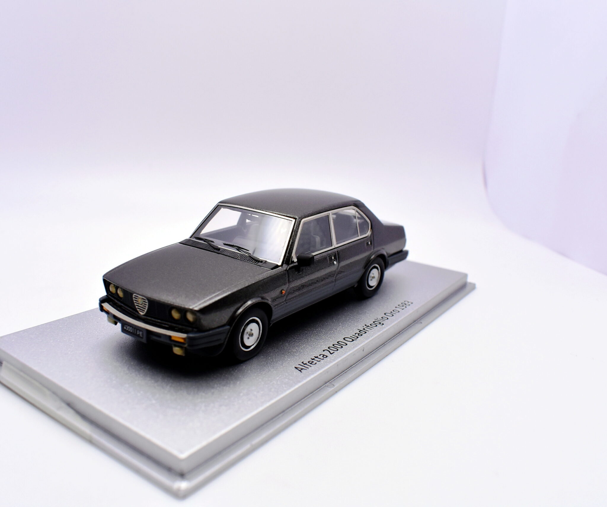 Modellino auto scala 1:43alfa romeo alfetta 2000 quadrifoglio oro kess modellismo statico