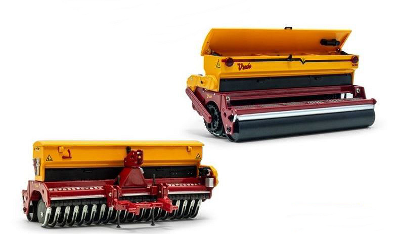 Modellino trattore Universal Hobbies TRASEMINATRICE SU PRATI STABILI VREDO AGRI 290 1:32 diecast modellismo statico